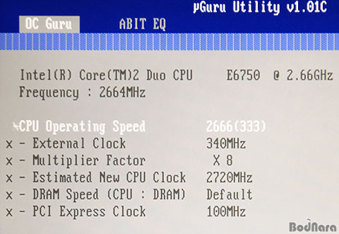 ÀÌ´Â ÀÌÀü ÄÜ·Î 34Á¾ º¥Ä¡¸¶Å©¿¡ »ç¿ëµÈ ABIT AW9D Max(i975x)¿Í AB9 Pro(P965) ¸ÞÀκ¸µåÀÇ °æ¿ì¿¡µµ 266MHz°¡ ¾Æ´Ñ 270MHz·Î ÀνĵǾú´ø °ÍÀ» »ý°¢ÇÑ´Ù¸é ´Ü¼øÈ÷ ¹ö±×¶ó°í Çϱ⿡´Â ¹«¾ð°¡ ¼®¿¬Ä¡ ¾ÊÀº Á¡ÀÌ ÀÖÀ¸¸ç °á±¹ Å×½ºÆ® Á¦Ç°Áß¿¡ °¡Àå ³ôÀº 2720MHzÀÇ µ¿ÀÛ Å¬·°À» Á¦°øÇÏ°Ô µÈ´Ù. (°¡Àå ³·Àº Á¦Ç°°ú´Â 59MHzÀÇ Å¬·°Â÷À̰¡ ¹ß»ýÇϸç ÀÌ´Â 492MB/sÀÇ ½Ã½ºÅÛ ¹ö½ºÀÇ ´ë¿ªÆø Â÷À̸¦ ÀǹÌÇÑ´Ù.) ¹°·Ð ¼öµ¿ ¼³Á¤À» ÅëÇØ CPU È£½ºÆ® Ŭ·°À» 333MHz·Î ¼³Á¤ÇÒ ¼ö ÀÖÁö¸¸ ¾îµð±îÁö³ª BIOS³»¿¡¼ ¸ðµç ¼³Á¤Àº ÀÚµ¿¼³Á¤À¸·Î ÇÑÈÄ Å×½ºÆ®¸¦ ÁøÇàÇÏ´Â °ÍÀ» ¿øÄ¢À¸·Î »ï¾Ò±â¿¡ ÀÌÈÄ Å×½ºÆ®¿¡¼´Â À§ ¼³Á¤ ±×´ë·Î Å×½ºÆ®¿¡ ÀÓÇϵµ·Ï ÇϰڴÙ.   ¸Þ¸ð¸® Ŭ·°Àº Ŭ·°Á¦³Ê·¹ÀÌÅ͸¦ ÅëÇØ FSB:DRAMÀÇ ÀÏÁ¤ ºñÀ²·Î ÀÚµ¿À¸·Î ¼³Á¤µÈ´Ù. ¿¹¸¦ µé¸é DDR2 ¸Þ¸ð¸®¸¦ ±âÁØÀ¸·Î ÀÎÅÚ P35Ĩ¼ÂÀÇ °æ¿ì ÀϹÝÀûÀ¸·Î CPU FSB°¡ 266MHzÀÎ Á¦Ç°ÀÇ °æ¿ì¿¡´Â FSB:DRAM ºñÀ²ÀÌ 2:3 À¸·Î µ¿ÀÛÇÏ¿© ¿À¹ö¸¦ ÇÏÁö ¾ÊÀº »óÅ¿¡¼´Â ¸Þ¸ð¸® µ¿ÀÛŬ·°ÀÌ 400MHz°¡ µÇ¸ç CPU FSB°¡ 333MHzÀÎ Á¦Ç°ÀÇ °æ¿ì¿¡´Â FSB:DRAMºñÀ²ÀÌ 5:6À¸·Î µ¿ÀÛÇØ CPU FSB°¡ 266MHzÀ϶§¿Í µ¿ÀÏÇÑ 400MHz·Î ¸Þ¸ð¸®°¡ µ¿ÀÛÇÏ°Ô µÇ¾î °á±¹ µÎ °æ¿ì ¸ðµÎ DDR2-800À» Á¤½Ä Áö¿øÇÏ°Ô µÈ´Ù.  ±×·¸´Ù°í µÎ ÇÁ·Î¼¼¼ÀÇ Â÷À̰¡ ´Ü¼øÈ÷ CPU FSBÀÇ Â÷À̶ó°í ÆÇ´ÜÇØ CPU FSB°¡ 266MHzÀÎ Á¦Ç°À» 333MHz·Î ¿À¹öŬ·°ÇÒ °æ¿ì FSB:DRAM ºñÀ²µµ ±×´ë·Î 2:3À¸·Î À¯ÁöµÇ±â ¶§¹®¿¡ ÀÚµ¿¼³Á¤À¸·Î ÇØ ³õ¾ÒÀ» °æ¿ì ¸Þ¸ð¸®´Â DDR2-1000MHz·Î µ¢´Þ¾Æ ¿À¹öŬ·°ÀÌ µÇ¾î¹ö¸°´Ù. ¸¸¾à ¸Þ¸ð¸®°¡ Á¦´ë·Î ¹öÅß³»Áö ¸øÇÒ °æ¿ì BIOS³»ÀÇ ¸Þ¸ð¸® ¹èÀ² Á¶Á¤ ±â´ÉÀ» ÅëÇØ ¼öµ¿À¸·Î  ³·ÃçÁÖ¾î¾ß ÇÏ´Â Â÷À̸¦ º¸ÀδÙ. ¹°·Ð CPU FSB°¡ 333MHzÀÎ Á¦Ç°ÀÇ °æ¿ì ±âº»¼³Á¤ÀÏ ¶§¿¡´Â ¸Þ¸ð¸®°¡ DDR2-800À¸·Î µ¿ÀÛÇÏÁö¸¸ ÃÖ±Ù ¸¹Àº ¸ÞÀκ¸µåµéÀº BIOS³» ¼³Á¤À» ÅëÇØ FSB:DRAM ºñÀ²À» 5:8 (1:1.6)À¸·Î ¼³Á¤ÇÔÀ¸·Î½á ¸Þ¸ð¸®¸¦ DDR2-1066À¸·Î µ¿ÀÛÀÌ °¡´ÉÇϵµ·Ï ÇÔÀ¸·Î½á ºñ°ø½ÄÀûÀÌÁö¸¸ DDR2-1066À» Áö¿øÇϰí ÀÖ´Â »óȲÀÌ´Ù. °¢¼³Çϰí, ÄÚ¾î2 µà¿À E6750 ÇÁ·Î¼¼¼¸¦ ÀåÂøÇÏ¿´À» ¶§ÀÇ ¸Þ¸ð¸® µ¿ÀÛ Å¬·° ¹× ŸÀ̹ÖÀº ´ÙÀ½°ú °°´Ù.
