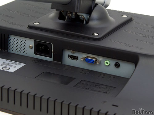 HANNS º¸½ºÅæÀº ¸ð´ÏÅÍ ³»ºÎ¿¡ ¾î´ðÅ͸¦ ³»ÀåÇØ Àü¿ø ÄÉÀÌºí¸¸ ¿¬°áÇÏ¸é µÈ´Ù. ÀÔ/Ãâ·Â ´ÜÀڷδ DVI ÀÔ·ÂÀ» °â¿ëÀ¸·Î ÇÏ´Â HDMI ÀÔ·Â ´ÜÀÚ¿Í D-SUB ÀÔ·Â ´ÜÀÚ, ¿Àµð¿À ÀÔ·Â ´ÜÀÚ¿Í À̾îÆù Ãâ·Â ´ÜÀÚ·Î ±¸¼ºµÈ´Ù. HDMI ÀÔ·ÂÀÇ °æ¿ì ½ºÅ×·¹¿À ¿Àµð¿À¸¦ ¿¬°áÇÏÁö ¾Ê¾Æµµ HDMI ¿¬°áÀ» ÅëÇØ À½¼º ½ÅÈ£¸¦ ¸ð´ÏÅÍ ½ºÇÇÄ¿·Î Ãâ·ÂÇÒ ¼ö ÀÖÁö¸¸, ¿ÜºÎ µðÁöÅÐ Ãâ·ÂÀ¸·Î »©³»´Â ±â´ÉÀº Á¦°øÇÏÁö ¾Ê´Â´Ù. µÞ¸éÀÇ ¿ìÃø ÇÏ´Ü¿¡ ¸ð´ÏÅÍ µµ³­¹æÁö¸¦ À§ÇÑ Ä˽ÌÅÏ ¶ô ȦÀÌ ÀÚ¸®Àâ°í ÀÖ´Ù.