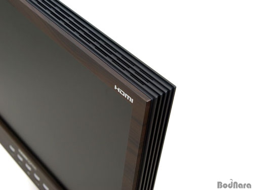HANNS º¸½ºÅæÀÇ Àü¸é ³ª¹« ÀçÁúÀº ½ÇÁ¦·Î ³ª¹«¸¦ »ç¿ëÇÑ °ÍÀÌ ¾Æ´Ï°í ³ª¹« ´À³¦ÀÌ ³ª´Â Ä¿¹ö¸¦ °¡Àå ¹Ù±ù ÂÊ¿¡¸¸ »ç¿ëÇÑ °ÍÀÌ´Ù. 19ÀÎÄ¡ Á¦Ç°ÀÌÁö¸¸ HDMI¸¦ Áö¿øÇØ À̸¦ »ó´Ü¿¡ Ç¥±âÇϰí ÀÖ´Ù.