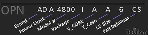 ¿ì¼± Á¦ÀÏ Ã³À½ÀÇ AD A¿¡¼­ AD´Â ¾Ö½½·Ð64 X2¸¦ ÀǹÌÇϸç Âü°í·Î »ùÇÁ·ÐÀÏ °æ¿ì¿¡´Â SD·Î Ç¥±âµÈ´Ù. ±× µÚÀÇ A´Â ¼ÒºñÀü·Â(TDP)¸¦ ÀǹÌÇÏ´Â °ÍÀ¸·Î XÀ̸é 125W, A/0À̸é 65W, H´Â 45nm, D´Â 35W¸¦ ÀǹÌÇϸç 90nm, 65nm °øÁ¤¿¡ µû¶ó ¾à°£ÀÇ Â÷À̸¦ º¸ÀδÙ.
