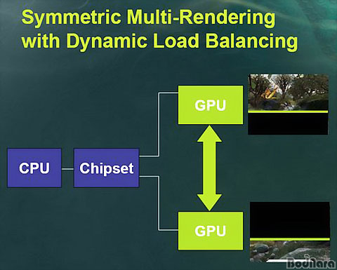 | Voodoo SLI¸¦ °³¼±ÇÑ NVIDIA SLI ´ÜÀÏ ½Ã½ºÅÛ »ó¿¡¼ ´Ù¼öÀÇ ±×·¡ÇÈ Ä«µå¸¦ ¿¬°áÇÏ´Â