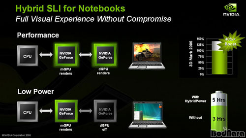 ¹èÅ͸® ½Ã°£À» ´ÜÃà½Ãų ¼ö ¹Û¿¡ ¾ø´Ù. ÇÏÁö¸¸ ÇÏÀ̺긮µå SLI ±â¼úÀ» ³ëÆ®ºÏ¿¡ Á¢¸ñ½Ã۸é ÀϹÝÀûÀΠȯ°æ¿¡¼´Â ³»Àå ±×·¡ÇÈÀÇ Àü·Â¸¸ ¼Ò¸ðÇϰí,