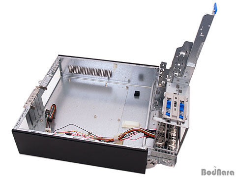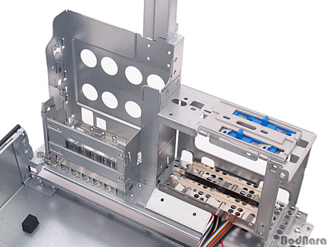 5.25ÀÎÄ¡´Â ODD¸¦ ¹Ð¾î ³Ö¾î ÀåÂøÇØÁÖ¸é ½¬¿ì¸ç, 3.5ÀÎÄ¡ º£ÀÌ¿¡´Â HDD ÀåÄ¡¸¦ ¹Ð¾î³Ö°í ÇÃ¶ó½ºÆ½ °¡À̵带 ¹Ð¾îÁÖ¸é ¼Õ½±°Ô ¿øÅÍÄ¡·Î ÀåÄ¡¸¦ °íÁ¤ÇØÁÙ ¼ö ÀÖ´Ù. ³»ºÎ 3.5ÀÎÄ¡ º£ÀÌ ºÎºÐ°ú TFX ÆÄ¿ö ¼­ÇöóÀÌ ÀåÂø ºÎºÐ¿¡´Â °í¹« ÁöÁö´ë¸¦ ¹èÄ¡ÇÏ¿© ÀåÄ¡ ÀåÂø½ÃÀÇ Áøµ¿À» Èí¼öÇÏ°í ´Ü´ÜÇÑ °íÁ¤À» ÇØÁØ´Ù.