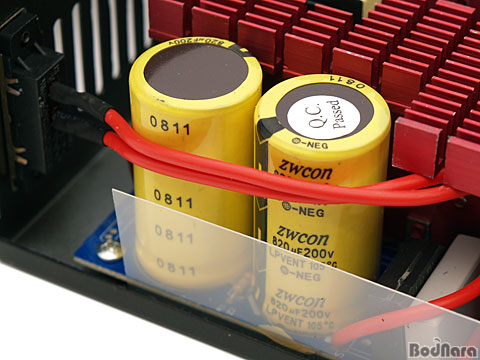 »ç¿ëµÇ´Â ijÆÐ½ÃÅÍ´Â ºñ½ÁÇÑ 400W ±ÞÀÇ Àú°¡Çü Á¦Ç°µé°ú´Â ´Þ¸® 200V 820uF ¿ë·®ÀÇ ´ë¿ë·® 2°³¸¦ »ç¿ëÇÔÀ¸·Î½á Àü¿ø °ø±ÞÀÇ ¾ÈÁ¤¼ºÀ» ³ôÀ̰í ÀÖ´Ù. PFC ¹æ½ÄÀÇ Á¦Ç°µéÀÌ ºñ±³Àû Àú¿ë·®À» »ç¿ëÇÔ¿¡µµ È¿À²ÀÌ ³ôÀº °Í°ú ´Þ¸® À̸¦ Á¦°øÇÏÁö ¾Ê´Â ÆÄ¿ö ¼­ÇöóÀ̵éÀº °í¿ë·®ÀÇ Ä³ÆÐ½ÃÅͰ¡ ÇÊ¿äÇØÁø´Ù. ¶Ç, ijÆÐ½ÃÅÍ ÁÂÃø¿¡´Â 110/ 220V º¯È¯ ½ºÀ§Ä¡°¡ À§Ä¡Çϰí ÀÖÀ¸³ª 220V Àü¿ëÀ¸·Î ³ª¿Â ¸¸Å­ ȸ·Î ±¸¼ºÀº µÇ¾îÀÖ´Â °ÍÀ¸·Î º¸¿©Áö³ª ½ÇÁ¦ ½ºÆ¼Ä¿¸¦ ÅëÇØ Ç×»ó 220V·Î °íÁ¤ÇÏ¿© »ç¿ëÇϵµ·Ï ¸¸µé¾î ³õ¾Ò´Ù.