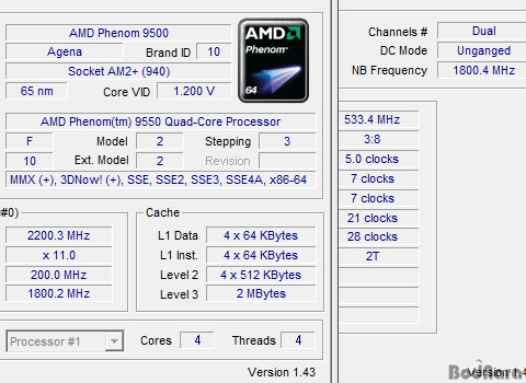 X4 9500°ú µ¿ÀÏÇÑ 2.2GHz µ¿ÀÛ Å¬·° (200MHzx11)À» °®Ãß°í ÀÖÀ¸¸ç À̹ۿ¡ 4x128KB