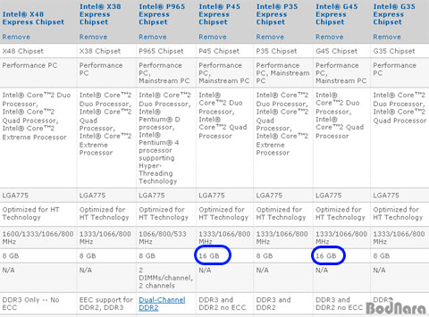 [ÀÎÅÚ¿¡¼ 16GB¸¦ °ø½Ä Áö¿øÇϴ Ĩ¼ÂÀº ÃÖ±Ù¿¡ ³ª¿Â P45/ G45°¡ ÀÖ´Ù.]