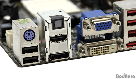 ¹éÆÐ³ÎÀÇ ¸ð½ÀÀ» »ìÆìº¸¸é ±âÁ¸¿¡ Ãâ½ÃµÇ¾ú´ø ±× ¾î¶² Á¦Ç°º¸´Ù ´Ù¾çÇÑ ÀÔ/Ãâ·Â Æ÷Æ®¸¦ °®Ãß°í ÀÖ´Â °ÍÀ» È®ÀÎÇÒ ¼ö ÀÖ´Ù. ¿ì¼± USB 2.0 Æ÷Æ®ÀÇ °æ¿ì ¹éÆÐ³Î¿¡ 6°³¸¦ °®Ãß°í ÀÖÀ¸¸ç ¸ÞÀκ¸µå³»ÀÇ Çì´õ¸¦ ÅëÇØ Ãß°¡·Î 6°³¸¦ »ç¿ëÇÒ ¼ö ÀÖµµ·Ï µÇ¾î ÀÖ´Ù. PS/2 Æ÷Æ®´Â 1°³¸¦ °®Ãß°í ÀÖÁö¸¸ Űº¸µå ¶Ç´Â ¸¶¿ì½º¸¦ °ø¿ëÀ¸·Î »ç¿ëÇÒ ¼ö Àֱ⠶§¹®¿¡ µÑ Áß¿¡ Çϳª¸¦ USB ¹æ½ÄÀ¸·Î »ç¿ëÇÒ °æ¿ì Ưº°È÷ »ç¿ëÇϴµ¥ ¹®Á¦Á¡Àº ¾ø´Ù. À̹ۿ¡ 8ä³Î »ç¿îµå Ãâ·ÂÀ» À§ÇÑ Æ÷Æ®¿Í ±¤Ãâ·ÂÀ» À§ÇÑ ¿ÉƼÄà S/PDIF Ãâ·Â Æ÷Æ®, ±×¸®°í ±â°¡ºñÆ® ÀÌ´õ³ÝÀ» Áö¿øÇÏ´Â RJ45 ·£Æ÷Æ® µîÀ» °®Ãß°í ÀÖÀ¸¸ç À̴ ±âÁ¸ ¸ÞÀκ¸µå¿Í Å« Â÷À̸¦ º¸ÀÌÁö ¾Ê´Â ºÎºÐÀÌ´Ù.