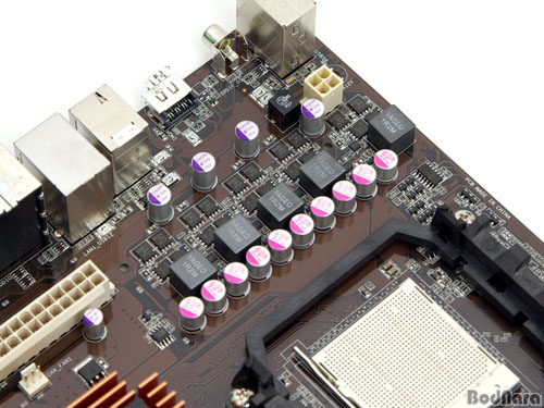 4°³ÀÇ MosfetÀÌ »ç¿ëµÈ °ÍÀ» º¼ ¼ö ÀÖ´Ù. ¼Ö¸®µå ijÆÐ½ÃÅÍ¿Í ÇÔ²² Å¥ºêÇü ÃÊÅ© ÄÚÀÏÀÌ µé¾î°¬´Ù. ÀϺΠAMD 780G ¸ÞÀκ¸µå´Â