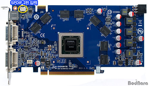 ÀÖ´Â SLI Áö¿øÀ» À§ÇØ ÇϳªÀÇ SLI Ä¿³ØÅͰ¡ Á¦°øµÈ´Ù. ¶Ç, HDMI Ãâ·Â½Ã À½¼ºÀ» ÀÔ·Â ¹ÞÀ» ¼ö ÀÖ´Â 2ÇÉ SPDIF