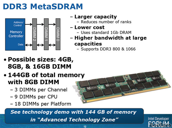 FB-DIMM¿¡¼ DDR3·Î ¹Ù²î¾ú´Âµ¥, ƯÈ÷ ¼¹ö ½ÃÀå¿¡¼´Â DDR3 MetaSDRAM ±â¼úÀ» ÅëÇØ ±âÁ¸ 8GB ¸ðµâÀÇ 2¹è¿¡ ÇØ´çÇÏ´Â