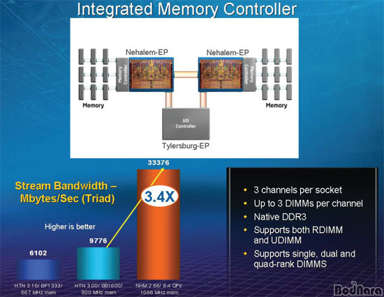 ¹Ù·Î AMDó·³ CPU ¾È¿¡ ¸Þ¸ð¸® ÄÁÆ®·Ñ·¯¸¦ ³»ÀåÇß´Ù´Â Á¡Àε¥, ÀÎÅÚÀº ¿©±â¿¡¼ ÇÑ¹ß ´õ ³ª°¡ DDR3 ¸Þ¸ð¸® ÄÁÆ®·Ñ·¯¸¦ ³Ö°í, µà¾ó