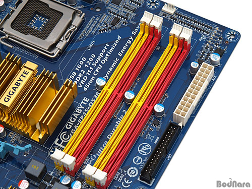 EP45-DS3RÀº DDR2 SDRAMÀ» Áö¿øÇϸç, ÃÑ 4°³ÀÇ ½½·ÔÀ» Á¦°øÇÏ¿© DDR2 667/ 800/ 1066/ 1200MHz±îÁö Áö¿øÀÌ °¡´ÉÇÏ´Ù. µà¾ó ä³Î ¸Þ¸ð¸® ±¸¼ºÀº µ¿ÀÏÇÑ »ö»ó (³ë¶õ ¶Ç´Â »¡°»ö 2°³ ½½·Ô ÀÌ¿ë)À» °¡Áø ½½·Ô¿¡ ½ºÆåÀÌ °°Àº ¸Þ¸ð¸®¸¦ »ç¿ëÇÏ¸é ±¸¼ºÀÌ °¡´ÉÇÏ´Ù. EP45-DS3R¿¡ »ç¿ëµÈ P45 Ĩ¼ÂÀº DDR3µµ 1333MHz±îÁö Áö¿øÀÌ °¡´ÉÇϳª ÀÌ ¸ÞÀκ¸µå´Â DDR2 SDRAM¸¸À» Áö¿øÇÑ´Ù. ¶Ç, P45 Ĩ¼ÂÀº P35 Ĩ¼Âº¸´Ù Áö¿ø ¸Þ¸ð¸® ¿ë·®ÀÌ ÃÖ´ë 8GB¿¡¼ 16GB·Î ´Ã¾ú´Ù.