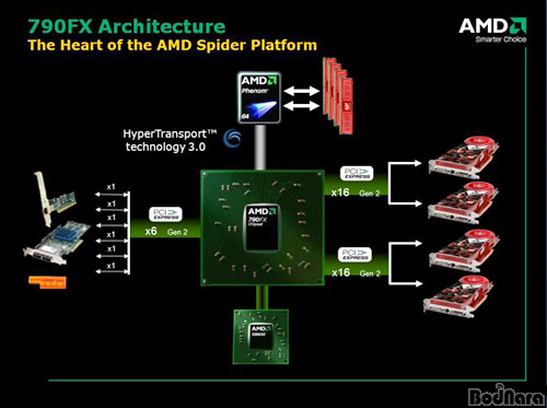 AMD 790FX´Â ±âÁ¸¿¡µµ »ç¿ëµÇ¾ú´ø ±×´ë·Î 2°³ÀÇ PCI Express 2.0 x16 ÀÎÅÍÆäÀ̽º¸¦ Áö¿øÇϰí, À̸¦ ´Ù½Ã 8 + 8·Î ¹Ù²Ü ¼ö ÀÖ¾î ÃÖ´ë 4°³ÀÇ ±×·¡ÇÈ Ä«µå¸¦ ¸ÖƼ GPU·Î ±¸¼ºÇÏ´Â Å©·Î½ºÆÄÀ̾îX ±â¼úÀ» Áö¿øÇÑ´Ù. ¶ÇÇÑ ±×·¡ÇÈ Àü¿ë ¿Ü¿¡ ¿ª½Ã 2¼¼´ë ¾ç¹æÇâ Àü¼ÛÀ» Áö¿øÇÏ´Â PCI Express 6 LaneÀ» È®º¸ÇØ ÁÖº¯±â±â¿ë ÀÎÅÍÆäÀ̽º·Î ÀÌ¿ëÇÒ ¼ö ÀÖ´Ù.