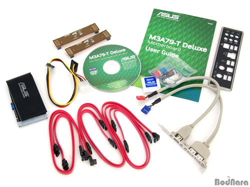 ASUS M3A79-T DeluxeÀÇ ±¸¼º¹°Àº »ç¿ëÀÚ ¸Å´º¾ó°ú µå¶óÀ̹ö/À¯Æ¿¸®Æ¼ DVD, 6°³ÀÇ SATA µ¥ÀÌÅÍ ÄÉÀ̺í°ú 1°³ÀÇ SATA Àü¿ø ÄÉÀ̺í, IDE ÄÉÀ̺í, USB 2.0/IEEE 1394 È®Àå ºê¶óÄÏ, ¹éÆÐ³Î, 2°³ÀÇ Å©·Î½ºÆÄÀÌ¾î ¿¬°á ÄÉÀ̺í, ±×¸®°í Q-Ä¿³ØÅͰ¡ µé¾îÀÖ´Ù.