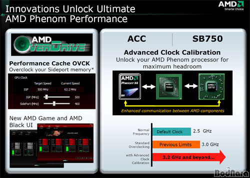 ƯÈ÷, SB750Àº »õ·Î Ãß°¡µÈ ACC (Advanced Clock Calibration) ÀÎÅÍÆäÀ̽º¸¦ ÅëÇØ SB750°ú AM2+ ÇÁ·Î¼¼¼¸¦ Á÷Á¢ ¿¬°áÇØ ±âÁ¸º¸´Ù ³ôÀº ¿À¹öŬ·°ÀÌ °¡´ÉÇϵµ·Ï ¸¸µé¾ú´Ù. ACC ÀÎÅÍÆäÀ̽º´Â Æä³Ñ ÇÁ·Î¼¼¼ Áß¿¡¼µµ BE (Black Edition) ¹öÀü¿¡ ÃÖÀûȰ¡ ÀÌ·ïÁø °ÍÀ¸·Î ¾Ë·ÁÁö°í ÀÖ´Ù.