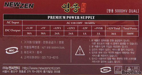ÆÄ¿öÀÇ Àüü Ãâ·ÂÀº 500W·Î ³ª¿ÍÀÖÁö¸¸ ´ºÁ¨ ȨÆäÀÌÁö Á¦Ç° ¼³¸í¿¡¼­´Â 500W¸¦ ÃÖ´ë Ãâ·Â(Max Power)·Î Ç¥½ÃÇϰí ÀÖ¾î ½ÇÁ¦ Á¤°Ý Ãâ·ÂÀº À̺¸´Ù ³·À» °ÍÀ¸·Î º¸ÀδÙ.