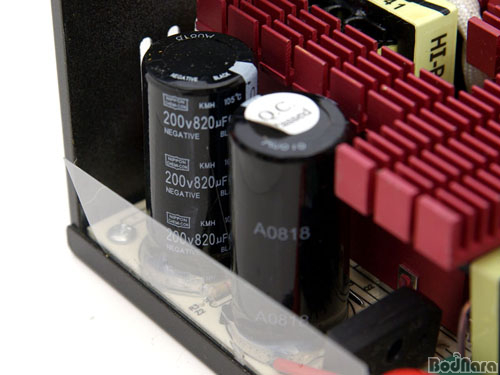 ijÆÐ½ÃÅÍ´Â 200V 820uF ¿ë·®ÀÇ NCC(Nippon Cemi-Con)»çÀÇ ¾Ë·ç¹Ì´½ ÀüÇØ ijÆÐ½ÃÅÍ 2°³¸¦ »ç¿ëÇß´Ù. ±âÁ¸ ´ºÁ¨ÀÇ 500W ÆÄ¿öÀÎ NZ-500Ti 2.2 Dual PFC Á¦Ç°¿¡ µé¾î°¬´ø ijÆÐ½ÃÅͰ¡ 200V 1200uF ¿ë·® 2°³¿´´ø °Í¿¡ ºñÇÏ¸é ¿ë·® ÀÚü´Â ÁÙ¾úÁö¸¸, Áß±¹Á¦ Zwcon»çÀÇ Ä³ÆÐ½ÃÅ͸¦ ½è´ø ±âÁ¸ Á¦Ç°°ú ´Þ¸® ÁÁÀº ǰÁúÀ» °¡Áø °ÍÀ¸·Î ¾Ë·ÁÁö´Â ÀϺ»Á¦ NCC»çÀÇ Ä³ÆÐ½ÃÅ͸¦ »ç¿ëÇØ ¾çº¸´Ù ÁúÀ» Ãß±¸Çϰí ÀÖ´Ù.