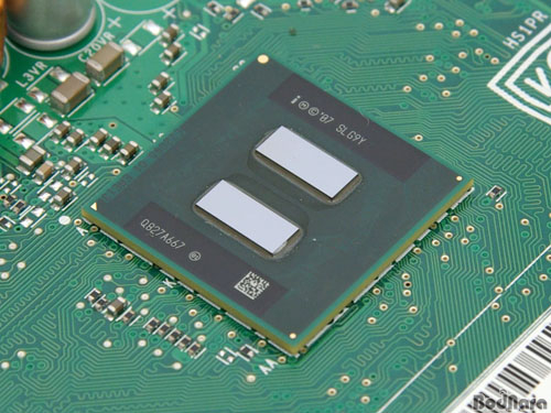 ÀÎÅÚ D945GCLF2¿¡´Â ³Ýž¿ëÀ¸·Î ¸¸µé¾îÁø ÀÎÅÚ ¾ÆÅè ÇÁ·Î¼¼¼°¡ º¸µå¿¡ Á÷Á¢ ÀåÂøµÇ¾î Àִµ¥, ÀÌÀü ¸ðµ¨¿¡¼´Â ½Ì±Û ÄÚ¾î ¾ÆÅè 230 ÇÁ·Î¼¼¼°¡ ÀÖ¾úÁö¸¸ »õ·Î Ãâ½ÃµÇ´Â D945GCLF2¿¡´Â 2°³ÀÇ Äھ ÇϳªÀÇ CPU¿¡ ºÙÀÎ µà¾ó ÄÚ¾î ¾ÆÅè 330 ÇÁ·Î¼¼¼°¡ »ç¿ëµÇ¾ú´Ù. CPU À§¿¡ ÀÖ´Â 2°³ÀÇ ÄÚ¾î ÇüŸ¦ º¸¸é µà¾ó ÄÚ¾î Àü¿ëÀÇ ¼³°è°¡ ÀÌ·ïÁø °ÍÀÌ ¾Æ´Ï¶ó ÀÎÅÚÀÌ ÆæÆ¼¾ö D, ÄÚ¾î 2 Äõµå¿¡¼ »ç¿ëÇÏ´ø ÇϳªÀÇ ´ÙÀÌ À§¿¡ 2°³ÀÇ Äھ ¾ñÀº ÇüŶó´Â °ÍÀ» È®ÀÎÇÒ ¼ö ÀÖ´Ù.