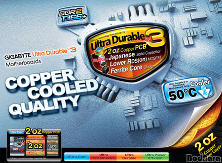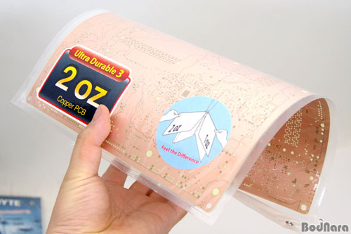 ±â°¡¹ÙÀÌÆ®´Â »õ·Î¿î GA-EP45-UD3 ¸ÞÀκ¸µåÀÇ ±¸¸® PCB°¡ 1 oz¿¡¼­ 2 oz·Î ´Ã¾î³ª¸é¼­ ÀÓÇÇ´ø½º(Impedance)¸¦ 2¹è·Î ³·Ãß°í ÀüÀÚÀÇ È帧µµ ´Ã¾î³ª°Ô µÇ¾î PCBÀÇ Àü·Â ¼Ò¸ð°¡ ÁÙ¾îµé°í ½ÅÈ£ÀÇ Ç°ÁúÀÌ ³ô¾ÆÁö¸ç, ÀúÇ×ÀÌ ÁÙ¾îµé±â ¶§¹®¿¡ ¹ß¿­ ¿ª½Ã »ó´ëÀûÀ¸·Î ÁÙ¾î Ä𸵿¡µµ µµ¿òÀ» ÁØ´Ù°í ¼³¸íÇϰí ÀÖ´Ù.