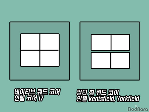 i7ºÎÅÍ´Â AMD Æä³Ñ ÇÁ·Î¼¼¼Ã³·³ Monolithic ¹æ½Ä (ÇϳªÀÇ ´ÙÀÌ¿¡ 4°³ÀÇ