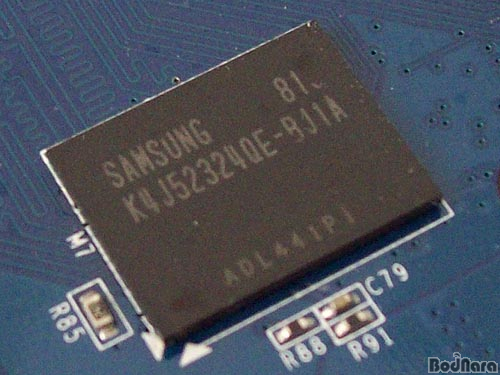 Á¦°ø¹ÞÀº »ùÇà Á¦Ç°ÀÇ ¸Þ¸ð¸®´Â »ï¼º GDDR3 (1.0ns)¸¦ ä¿ëÇÑ Á¦Ç°À̸ç, ½ºÆå»ó 2000MhzÀÇ Å¬·°À» °®´Â´Ù. ±×·¯³ª ÀÌÁ¦Ç°Àº ·¹ÆÛ·±½º Ŭ·° 1800Mhz·Î ÀÛµ¿Çϸç, »ç¿ëÀÚ°¡ º°µµÀÇ ¿À¹öŬ·° ¼ÒÇÁÆ®¿þ¾î¸¦ »ç¿ëÇÒ °æ¿ì 2000Mhz±îÁö´Â ¹«³È÷ ¿À¹öŬ·°ÀÌ °¡´ÉÇÒ °ÍÀ¸·Î º¸À̸ç, ±× ÀÌ»óµµ Á¦Ç°¿¡ µû¶ó °¡´ÉÇÒ °ÍÀ¸·Î º¸ÀδÙ. 256BitÀÇ ¸Þ¸ð¸® ÀÎÅÍÆäÀ̽º·Î ÃÑ 8°³ÀÇ ¸Þ¸ð¸®¸¦ ÅëÇÏ¿© 512MBÀÇ ¸Þ¸ð¸® ¿ë·®À» Á¦°øÇÑ´Ù.