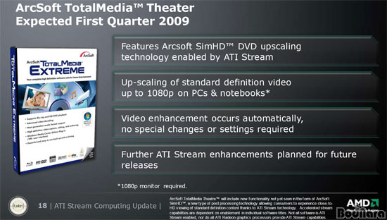 ATI StreamÀÌ ¾î¶² ±â¼úÀÏÁö ±Ã±ÝÇÒ °ÍÀε¥ ATI StreamÀº °æÀï»çÀÎ NVIDIA°¡ GPU º´·Ä µ¥ÀÌÅÍ ÄÄÇ»ÆÃÀ» À§ÇØ Áö¿øÇϰí ÀÖ´Â CUDA¿Í °°Àº GPGPU ¼ÒÆ®ÇÁ¿þ¾î ±â¼úÀ̶ó°í ¼³¸íÇÒ ¼ö ÀÖ´Ù. AMD ATI StreamÀº CPU°¡ ó¸®ÇؾßÇÒ ·Îµå¿Í GPUÀÇ ·Îµå¸¦ ºÐ»êÇÏ¿© ±ÕÇüÀÖ°Ô Ã³¸®ÇÔÀ¸·Î½á 󸮼º´É Çâ»ó°ú È¿À²À» ³ôÀÏ ¼ö ÀÖµµ·Ï ÇØÁØ´Ù. Âü°í·Î AMDÀÇ °æ¿ì °æÀï»çÀÎ NVIDIA CUDAº¸´Ù CPU¿Í GPU °£ÀÇ Ã³¸® È¿À²À» ³ô¿´´Ù°í ¹ßÇ¥Çß´Ù.