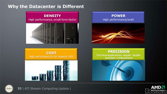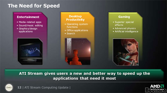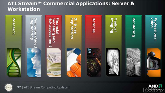 AMD´Â 2006³âºÎÅÍ º»°ÝÀûÀÎ °³¹ß¿¡ µé¾î°£ GPGPU Ȱ¿ëÀÌ ÇöÀç ó¸® ¼º´ÉÀÌ Å©°Ô Çâ»óµÈ GPUµéÀ» Ȱ¿ëÇÔÀ¸·Î½á ÀÌÀüº¸´Ù 󸮼º´ÉÀ̳ª È¿À²ÀÌ Å©°Ô Áõ´ëµÇ°í ÀÖ°í ATI Stream ±â¼úÀ» ÅëÇØ ¼¹ö³ª ¿öÅ©½ºÅ×ÀÌ¼Ç ½ÃÀåÀÇ HPC (High Performance Computing) ¿ä±¸¸¦ ÃæÁ·ÇØÁÖ¸ç, µ¥½ºÅ©Å¾ ½ÃÀå¿¡¼µµ GPGPU ±â¼úÀ» Ȱ¿ëÇÔÀ¸·Î½á »ç¿ëÀÚµéÀÇ ¼º´É Çâ»ó¿¡ ´ëÇÑ ¿ä±¸¸¦ ÃæÁ·½ÃÄÑÁÙ ¼ö ÀÖÀ» °ÍÀ¸·Î ±â´ëµÇ°í ÀÖ´Ù.