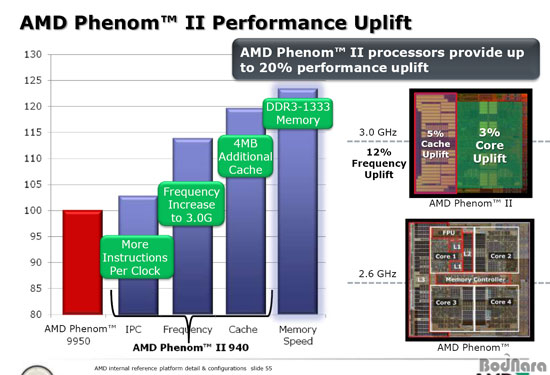 65nm °øÁ¤ Æä³Ñ X4 9950BE¿Í ºñ±³ÇÏ¿© 45nm °øÁ¤, 4MB ´Ã¾î³ L3 6MB¸¦