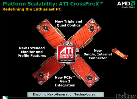 ATI°¡ AMD¿¡ ÀμöµÇ±â ÀÌÀüºÎÅÍ ÀÎÅÚÀº ATI Å©·Î½ºÆÄÀ̾î(CrossFire) ¸ÖƼ GPU ±â¼úÀ» ÀÚ»çÀÇ ¸ÞÀκ¸µå Ĩ¼Â¿¡ Áö¿øÇÒ ¼ö ÀÖ°Ô ÇßÀ¸¸ç, Äõµå GPU ±¸¼ºÀÌ °¡´ÉÇÑ Å©·Î½ºÆÄÀ̾îX(CrossFireX) ±â¼ú ¿ª½Ã X58 Ĩ¼Â¿¡ ±âº» Àû¿ëÇß´Ù.