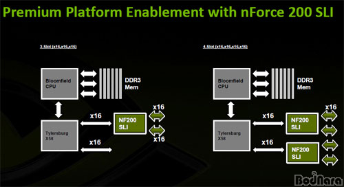 ±â¼úÀûÀ¸·Î´Â ÀÎÅÚ X58 Ĩ¼Â¸¸ »ç¿ëÇØµµ PCI Express Lane ±¸¼ºÀ» ÁÙÀÌ´Â ¹æ¹ýÀ¸·Î µà¾ó ¹× 3-Way, ±×¸®°í Äõµå SLI ±¸¼º±îÁö °¡´ÉÇÏÁö¸¸ ½½·Ô °¹¼öÀÇ ¹®Á¦°¡ ¾Æ´Ï¶ó ¶óÀ̼¾½ºÀÇ ¹®Á¦À̱⠶§¹®¿¡ 3°³ ÀÌ»óÀÇ PCI Express x16 ½½·ÔÀ» °¡Áö°í ÀÖ´Ù°í ÇØµµ ÇØ´ç ¸ÞÀκ¸µå°¡ ¿£ºñµð¾Æ SLI ¶óÀ̼¾½º¸¦ ¹ÞÁö ¸øÇϸé SLI ±â´ÉÀ» »ç¿ëÇÒ ¼ö ¾ø´Ù.