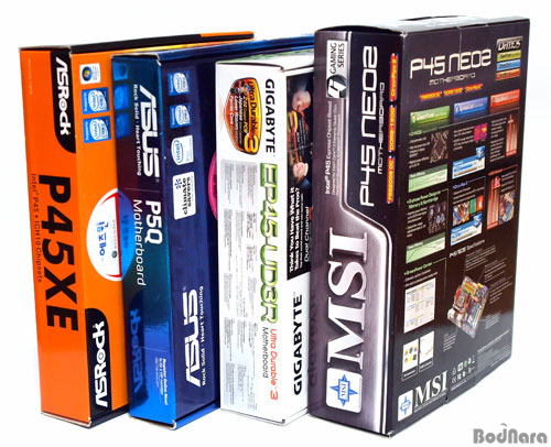ÀÌ¿ÍÇÔ²² ¸ÞÀκ¸µå ¸ÞÀÌÀú 3»ç¸¦ ´ëÇ¥ÇÏ´Â ASUS, GIGABYTE, MSIÀÇ ´ëÇ¥Àû ¸ÞÀνºÆ®¸²¸ÞÀκ¸µåÀÎ ASUS P5Q, GIGABYTE EP45-UD3R, MSI P45 NEO2-FRÀ» ¼±Á¤Çß´Ù. MSIÀÇ °æ¿ì P45 NEO2-FR°ú P45 NEO3-FRÀÌ °øÁ¸ÇØ, NEO3-FRÀÇ Ã·ºÎ¼³¸íÀ» ÀϺΠ³Ö¾úÀ¸³ª ±âÁØ Å×½ºÆ®´Â P45 NEO2-FR·Î ÁøÇàÇß´Ù. ÀÌ´Â 100% ±âÀÚÀÇ ÀÇÁßÀ¸·Î, NEO3-FRº¸´Ù NEO2-FRÀÌ ¿Ï¼ºµµ¸é¿¡¼ ´õ ³ô°í ¼ÒºñÀÚ¼±Åÿ¡¼µµ ´õ À¯¸®ÇÏ´Ù ÆÇ´ÜÇ߱⠶§¹®ÀÌ´Ù.