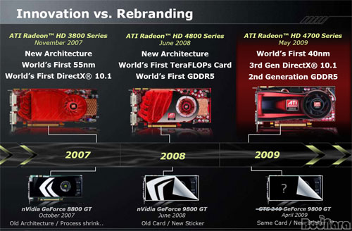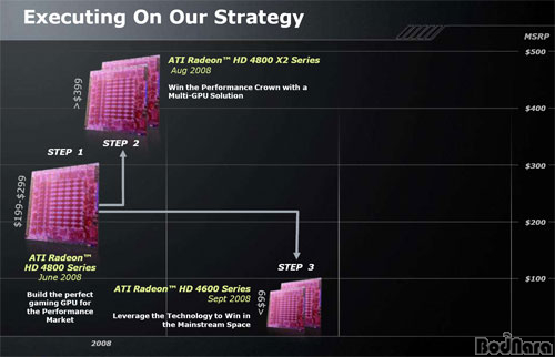 Radeon HD 4770Àº HD 4830ÀÌ À§Ä¡Çϰí ÀÖ´ø ½ÃÀå¿¡ µîÀåÇÏ°Ô µÉ °ÍÀ¸·Î ¾Ë·ÁÁö°í ÀÖÀ¸¸ç, ¸ÞÀνºÆ®¸²±ÞÀÇ Æ¯Â¡À» °®°í ÀÖÁö¸¸, °øÁ¤°ú °íŬ·°ÀÇ GDDR5 ¸Þ¸ð¸® »ç¿ë µîÀ» ÅëÇØ ¼º´É ºÎÁ·À» ÃÖ¼ÒÈÇϸç, »óÀ§ Á¦Ç°µé¿¡µµ °æÀïÇÒ ¼ö ÀÖ´Â ¼º´ÉÀ» Á¦°øÇÒ °ÍÀ¸·Î ¾Ë·ÁÁö°í ÀÖ´Ù. ƯÈ÷, ³ôÀº ¼º´É¿¡ ¹Ì¼¼°øÁ¤ÀÇ ÀåÁ¡ ÁßÀÇ ÇϳªÀÎ »ý»ê ºñ¿ëÀ» ÁÙÀ̰í PCB ¼³°èÀÇ °£¼ÒÈ¿Í ºÎǰ »ç¿ëÀ» ÁÙ¿© °¡°ÝÀûÀÎ ºÎºÐ¿¡¼µµ °æÀï·ÂÀ» Á¦°øÇÏ°Ô µÈ´Ù. ¶ÇÇÑ, ¸ÞÀνºÆ®¸²±Þ ¹× ±× ÀÌÇÏ Á¦Ç°µéÀÌ ±×·¯ÇßµíÀÌ ·¹ÆÛ·±½º ¾Æ´Ñ ºñ·¹ÆÛ·±½º ¹æ½ÄÀ» ÅëÇØ º¸´Ù Àú·ÅÇÑ Á¦Ç°°ú ¿À¹öŬ·° Á¦Ç°µéµµ µîÀåÇÒ °ÍÀ¸·Î ¿¹»óµÈ´Ù.