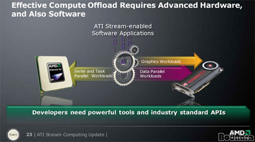 NVIDIA¿Í AMD ATIÀÇ GPGPU ±â¼úÀº °¢°¢ CUDA¿Í ATI StreamÀ¸·Î ¼Ò°³ÇßÁö¸¸, ÇöÀç GPGPU ±â¼úÀÌ Ç¥ÁØÀ¸·Î Á¤ÇØÁöÁö ¾ÊÀº »óȲÀÌ´Ù. ±×·¸±â ¶§¹®¿¡ ¾ç»ç´Â ÀÚ»çÀÇ GPGPU ±â¼ú »Ó¸¸ ¾Æ´Ï¶ó °ø°³ Ç¥ÁØÀÎ OpenCL°ú À©µµ¿ì 7¿¡ Æ÷ÇÔµÈ DirectX 11ÀÌ Áö¿øÇÏ´Â GPGPU ±â¼úÀÎ DirectX Compute¸¦ Áö¿øÇÑ´Ù.