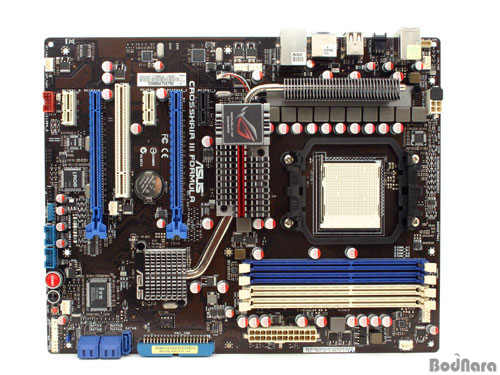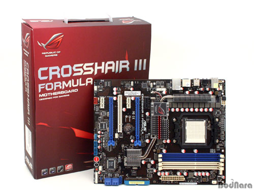 Crosshair II Formula¿¡ ÀÌ¾î µîÀåÇÑ ASUSÀÇ AMD Ĩ¼ÂÀ» »ç¿ëÇÑ R.O.G ½Ã¸®Áî ¸ÞÀκ¸µå Crosshair III Formula(ÀÌÇÏ Crosshair)´Â AMDÀÇ 790FX¿Í SB750 Ĩ¼ÂÀ» »ç¿ëÇÑ ¼ÒÄÏ AM3 Çü½ÄÀÇ ¸ÞÀκ¸µå·Î, PCIe 2.0 x16 ½½·Ô 2°³¸¦ ÀÌ¿ëÇÑ ´ë¿ªÆø x16À¸·Î µ¿±âÈµÈ Å©·Î½ºÆÄÀÌ¾î ±¸¼ºÀ» Áö¿øÇϰí, PCIe x1 Çü½ÄÀÇ SUPREME FX »ç¿îµå¸¦ Á¦°øÇÏ¿© ¿Àµð¿À Áö¿ø °È, ¿À¹öŬ·¯Å·À» À§ÇÑ ±â´ÉÀ» Áö¿øÇÏ¿© ASUSÀÇ R.O.G Á¦Ç°±º ´Ù¿î ¸ð½ÀÀ» º¸¿©ÁÖ´Â °í±ÞÇü ¸ÞÀκ¸µåÀÌ´Ù.