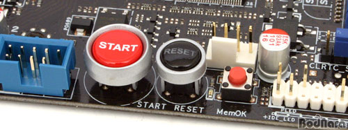¿Âº¸µå ½ºÀ§Ä¡·Î Àü¿ø ¹öưÀÎ ºÓÀº»öÀÇ START ¹öư°ú °ËÀº»öÀÎ RESET ¹öư, ¸Þ¸ð¸® ȣȯ¼º È®º¸¸¦ À§ÇÑ MemOK ¹öưÀ» ¸¶·ÃÇØ ³õ¾Ò´Ù. MemOK ¹öưÀº ¹ÙÀÌ¿À½º ¼¼ÆÃ ¹®Á¦³ª ¸Þ¸ð¸® ȣȯ¼º ¹®Á¦·Î Á¦´ë·Î ºÎÆÃÀÌ µÇÁö ¾ÊÀ» ¶§ ´·¯ÁÖ¸é ÀÚµ¿À¸·Î ºÎÆÃ °¡´ÉÇÑ ¸Þ¸ð¸® ¼¼ÆÃÀ¸·Î ¹ÙÀÌ¿À½º¸¦ Á¶ÀýÇÏ´Â ±â´ÉÀ» ÇÑ´Ù.