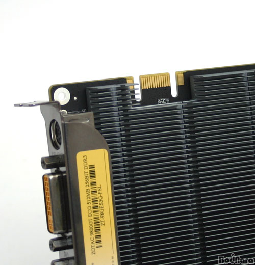¸Þ¸ð¸® ¹ö½º¿Í µ¿ÀÛ¼Óµµ´Â ÀÏ´Ü 9800GT¿Í µ¿ÀÏÇÑ 256bit, µ¿ÀÛ ¼Óµµ 1800MHzÀÇ ½ºÆåÀ» °¡Áö´Â ÇÏÀ̴нºÀÇ GDDR3 ¸Þ¸ð¸®(H5RS5223CFR-NOC. ÇÏÀ̴нº Ãø¿¡¼ Á¦½ÃÇÑ µ¿ÀÛ¼Óµµ´Â 2000MHz) 512MB¸¦ ÀåÂøÇϰí ÀÖ´Ù.