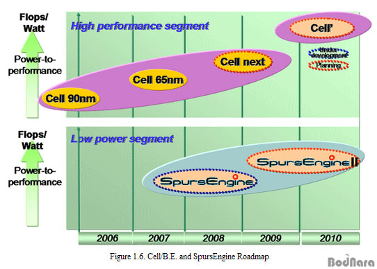 CellÀ» ±â¹ÝÀ¸·Î Çϰí ÀÖ´Â SpursEngineÀº 2007³â µîÀåÇÏ¿© ÇöÀç¿¡ À̸£°í ÀÖÀ¸¸ç, SpursEngine II´Â 2009³â ÀÌÈÄ µîÀåÇÒ °ÍÀ¸·Î ¾Ë·ÁÁö°í ÀÖ´Ù. Cell ÇÁ·Î¼¼¼ ¿ª½Ã 65nm °øÁ¤ÀÌ 2007³â µîÀåÇß°í ÀÌÈÄ °è¼Ó ¹ßÀüµÇ°í ¾÷±×·¹À̵åµÈ ÇÁ·Î¼¼¼µéÀÌ µîÀåÇϰí ÀÖ´Ù. Cell ÇÁ·Î¼¼¼°¡ °í¼º´ÉÀ» À§ÇÑ ºÐ¾ß¿¡ ÀûÇÕÇÑ ±¸Á¶ (PS3¿Í °°Àº ÄÜ¼Ö °ÔÀӱ⠵î)À̰í SpursEngineÀº ÀúÀü·Â¿¡ ºñµð¿À ÀÎÄÚµù ºÐ¾ß (Æ®·£½ºÄÚµù (ÀçÀÎÄÚµù)°ú ºñµð¿À ÆíÁý µî)¿¡¼ ³ôÀº ¼º´ÉÀ» Á¦°øÇÏ°Ô µÈ´Ù.