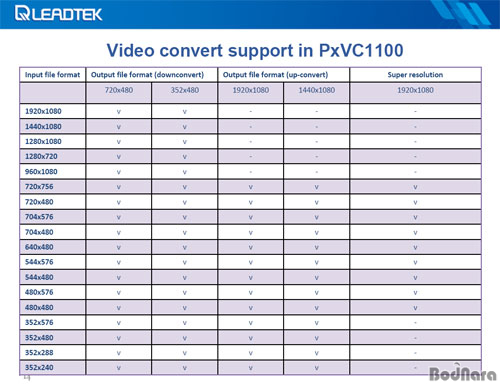 WinFast PxVC1100Àº Cell ±â¹ÝÀÇ SpursEngineÀ» ³»ÀåÇÏ¿© ´Ù¾çÇÑ ÇØ»óµµÀÇ ºñµð¿À ÄÁ¹öÆ®°¡ °¡´ÉÇØÁ³´Ù. °íÇØ»óµµ¿¡¼ ÀúÇØ»óµµ·ÎÀÇ ´Ù¿î½ºÄÉÀϸµÀº ´ëºÎºÐ Áö¿øÇϰí ÀÖÀ¸¸ç, ÀúÇØ»óµµ¿¡¼ °íÇØ»óµµ·ÎÀÇ ¾÷½ºÄÉÀϸµ º¯È¯Àº ÀÏºÎ ÇØ»óµµ¸¦ Á¦¿ÜÇϰí Áö¿øµÈ´Ù. ¾Õ¼ ¾ð±ÞµÈ Super ResolutionÀº ÀúÇØ»óµµ¸¦ °íÇØ»óµµ·Î ¾÷½ºÄÉÀϸµ½Ã »ç¿ëµÇ´Â ±â´ÉÀ¸·Î ÀúÇØ»óµµ¿Í ÀϺΠ°íÇØ»óµµ´Â Áö¿ø¿¡¼ Á¦¿ÜµÈ´Ù.