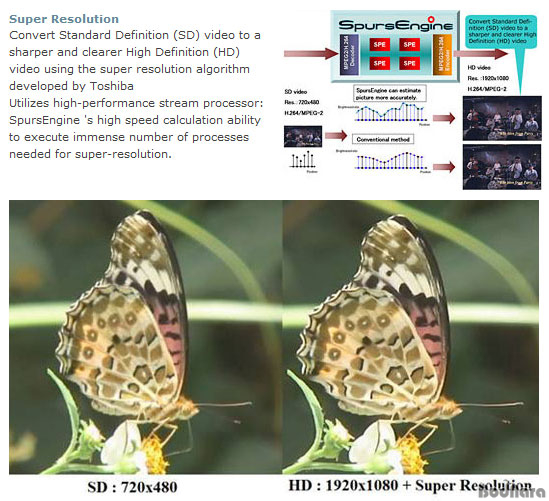 Super ResolutionÀº SpurEngine SE1000À» ¸¸µç µµ½Ã¹Ù¿¡¼ °³¹ßÇÑ ±â¼ú·Î SD (Standard Definition) ¿µ»óÀ» HD (High Definition)À¸·Î Æ®·£½ºÄÚµù (ÀçÀÎÄÚµù)½Ã ³¯Ä«·Ó°í ¼±¸íÇÏ°Ô ¸¸µé¾î ´õ »ý»ýÇÑ ¿µ»óÀ» ¸¸µé¾îÁØ´Ù. Super ResolutionÀº SpurEngine¿¡ ÃÖÀûÈµÈ ¾Ë°í¸®ÁòÀ» ÀÌ¿ëÇÏ¿© Æ®·£½ºÄÚµù½Ã ÃÖÀûÈµÈ ¼Óµµ¿Í °³¼±µÈ ÈÁúÀ» ±¸ÇöÇØÁØ´Ù. Å×½ºÆ®¸¦ ÁøÇàÇÑ TMPGEnc 4.0 Xpress¿¡¼´Â ÀÌ ¿É¼Ç¿¡ µû¸¥ ¼º´É Â÷À̸¦ ºñ±³Çß´Ù.