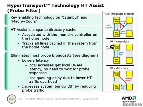 CPUÀÇ Ã³¸® È¿À²À» ³ôÀÏ ¼ö ÀÖ°Ô µµÀÔµÈ HT Assist (Probe Filter)´Â 6ÄÚ¾î À̽ºÅººÒ ¹ßÇ¥½Ã µîÀåÇß´ø ±â¼ú·Î À̽ºÅººÒ ÄÚ¾î 2°³·Î Á¶ÇյǴ 12ÄÚ¾î Magny-Cours¿¡¼ÀÇ Áö¿øÀº ´ç¿¬ÇÑ ºÎºÐÀÌ´Ù.