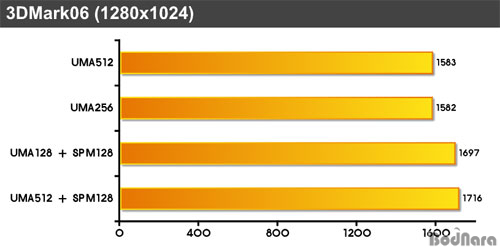 400MHz(DDR2 800MHz), IGPÀÇ Å¬·°Àº ±âº» Ŭ·°ÀÎ 500MHz·Î ¼¼ÆÃÇϰí 3DMark06ÀÇ ±âº» ¼³Á¤¿¡¼ Å×½ºÆ®¸¦ ÁøÇàÇÏ¿´´Ù.