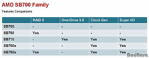 AMD 700 ½Ã¸®Áî ¸ÞÀκ¸µå Ĩ¼ÂÀº ¾î¶² »ç¿ì½ººê¸´Áö Ĩ¼ÂÀ» »ç¿ëÇÏ´À³Ä¿¡ µû¶ó ¿À¹öŬ·° ¹× ÄÚ¾î °³Á¶, RAID Áö¿ø µî ÇÙ½É ±â´ÉÀÌ ´Þ¶óÁö°Ô µÇ´Âµ¥, Ãʱ⿡´Â SB700°ú SB750ÀÌ ÁÖ·Î »ç¿ëµÇ¾úÀ¸³ª ÃÖ±Ù¿¡´Â RAID ±â´ÉÀº ºüÁö°í ¿À¹öŬ·° ±â´ÉÀÌ °­È­µÈ SB710ÀÌ ÁÖ·ÂÀ¸·Î ¾²À̰í ÀÖ´Ù.