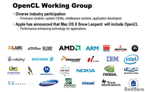 ¾ÖÇÃÀº ÀÌ¹Ì 2008³â 6¿ùºÎÅÍ AMD, ÀÎÅÚ, ¿£ºñµð¾Æ¸¦ ºñ·ÔÇÑ ´Ù¸¥ ¿©·¯ ±â¾÷µé°ú ÇÔ²² OpenCL ¿öÅ· ±×·ìÀ» ¸¸µé¾ú°í, Ç¥ÁØ °ø½Ä ±â°üÀÎ Khronos Group¿¡ OpenCL