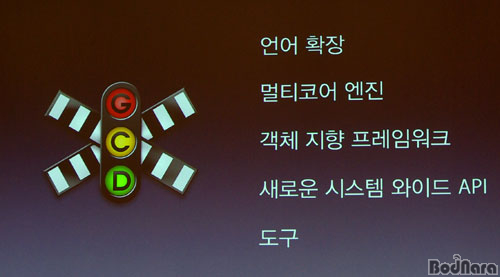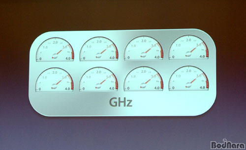 µÎ ¹øÂ° ÇÙ½É ±â¼ú º¯È´Â ¸ÖƼ Äھ ´ëÇÑ Àû±ØÀûÀÎ Áö¿øÀÌ´Ù. ÇöÀçÀÇ CPU°¡ ¹ß¿À̳ª ±â¼ú ÇѰè·Î CPU Ŭ·° °æÀïÀ» ¸ØÃá ´ë½Å ÄÚ¾î ¼ýÀÚ¸¦ ´Ã·Á¼ ¸ÖƼ ½º·¹µå ȯ°æ¿¡¼ÀÇ ¼º´ÉÀ» Çâ»ó½ÃŰ´Â ¸ÖƼ ÄÚ¾î(Multi Core) °æÀï¿¡ µé¾î¼¹±â ¶§¹®¿¡, ÀÎÅÚ CPU¸¦ »ç¿ëÇÏ´Â ¾ÖÇõµ Mac OS X¿¡ ¸ÖƼ Äھ ÃÖÀûÈµÈ ±â´ÉÀ» žÀçÇß´Ù.