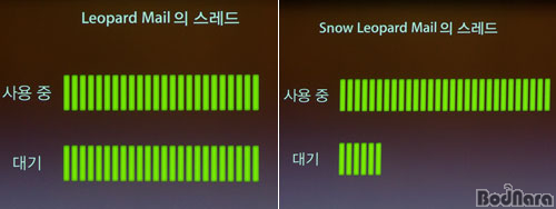 ¿¹¸¦ µé¾î ±âÁ¸ OS X 10.5 ·¹ÆÛµåÀÇ ¸ÞÀÏ ±â´É¿¡ ´ëÇÑ ½º·¹µå´Â ¸ÞÀÏÀ» »ç¿ëÇÒ ¶§³ª »ç¿ëÇÏÁö ¾ÊÀ» ¶§³ª ÀÏÁ¤ÇÑ ½º·¹µå¸¦ Â÷ÁöÇϰí ÀÖ¾úÁö¸¸, GCD°¡ Àû¿ëµÇ¸é ¸ÞÀÏ ±â´ÉÀ» ÀÌ¿ëÇÒ ¶§´Â Á¾Àüº¸´Ù ¸¹Àº ½º·¹µå¸¦ ÇÒ´çÇÏ°í »ç¿ëÇÏÁö ¾ÊÀ» ¶§´Â ½º·¹µå¸¦ ÃÖ¼ÒÈÇØ¼ ½Ã½ºÅÛ ÀÚ¿øÀ» ¿øÈ°ÇÏ°Ô ÀÌ¿ëÇϵµ·Ï °³¼±µÇ¾ú´Ù.