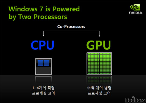 ÀϹÝÀûÀ¸·Î »ç¿ëµÇ´Â ¾îÇø®ÄÉÀ̼ǵéÀº CPU¸¦ ÀÌ¿ëÇÑ Ã³¸®°¡ ÀÌ·ç¾îÁö¸ç, GPU´Â ȸ鿡 ³ªÅ¸³»´Â µð½ºÇ÷¹ÀÌ ±â´ÉÀÌ ÁÖ°¡µÇ¾ú´Ù. ±×·¯³ª, À©µµ¿ì 7 ȯ°æÀ¸·ÎÀÇ º¯È°¡ ÀÌ·ç¾îÁö¸é¼ ºñµð¿À ÀÎÄÚµù µîÀÇ ÀÛ¾÷¿¡ CPU¿Í GPU ÇÁ·Î¼¼½Ì ´É·ÂÀ» ¼·Î Á¶ÇÕÇÏ¿© CPU ´Üµ¶Ã³¸®º¸´Ù ´õ ³ôÀº ó¸® ¼º´ÉÀ» ¾òÀ» ¼ö ÀÖ°Ô µÈ´Ù. ÀÌ´Â À©µµ¿ì 7¿¡¼ GPGPU ±â¼úÀÎ DirectCompute¸¦ º»°ÝÀûÀ¸·Î Áö¿øÇϱ⠽ÃÀÛÇ߱⠶§¹®ÀÌ´Ù. ¹°·Ð, À©µµ¿ì ºñ½ºÅ¸¿¡¼µµ À̸¦ »ç¿ë°¡´ÉÇϳª À©µµ¿ì 7¿¡¼ º¸´Ù ´õ ÃÖÀûÈµÈ ÇüÅ·Π¸¸µé¾îÁø´Ù.