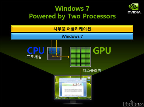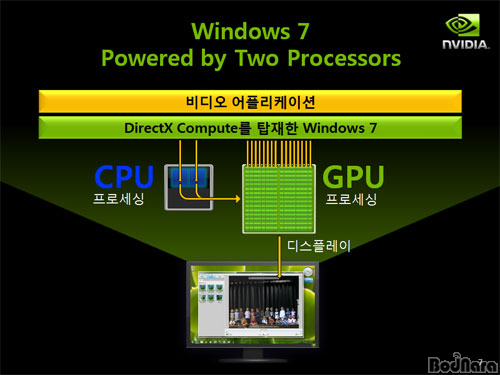 À©µµ¿ì 7Àº CPU¿Í GPUÀÇ Çù·ÂÀ» °ÈÇß´Ù°í Çߴµ¥ ÀÌ´Â DirectX 11 API ÁßÀÇ ÇϳªÀÎ DirectCompute¸¦ ÅëÇØ µÞ¹ÞħÇϰí ÀÖ´Ù. DirectCompute API´Â NVIDIA CUDA³ª AMD ATI Streamó·³ GPGPU ±â¼úÀÇ ÀÏÁ¾ÀÌ´Ù.