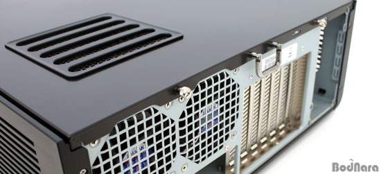 Á¦Ç°ÀÇ Èĸ鿡´Â 7°³ÀÇ PCIÀåÄ¡¸¦ ÀåÂøÇÒ ¼ö ÀÖ´Â °¡À̵å¿Í ¹éÆÐ³ÎÀ» À§ÇÑ °ø°£, ±×¸®°í ÆÄ¿ö¼ÇöóÀ̸¦ ÀåÂøÇÒ ¼ö ÀÖ´Â °ø°£À» È®ÀÎÇÒ ¼ö ÀÖ´Ù. ¶ÇÇÑ HD503Àº Èĸ鿡 ½Ã½ºÅÛÀÇ ³Ã°¢À» À§ÇØ µÎ°³ÀÇ ¿¡¾îȦÀ» ÁغñÇϰí Àִµ¥ ÀÌ µÎ°³ÀÇ ¿¡¾îȦ¿¡´Â 80mm ³Ã°¢ÆÒÀÌ ÀåÂøµÇ¾î ÀÖ´Ù.     Á¦Ç°ÀÇ »ó´ÜÀº ½Ã½ºÅÛÀ» ±¸¼ºÇÒ¿´À» °æ¿ì CPU°¡ À§Ä¡ÇÏ´Â ºÎºÐ¿¡ ³Ã°¢À» À§ÇÑ ¿¡¾îȦÀÌ ¼³°èµÇ¾î ÀÖÀ½À» È®ÀÎÇÒ ¼ö ÀÖ´Ù.