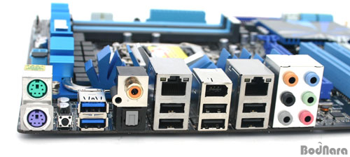 ¹éÆÐ³Î¿¡´Â USB 3.0 Æ÷Æ® À̿ܿ¡ Ãß°¡·Î USB 2.0 Æ÷Æ® 6°³, PS/2 Æ÷Æ® 2°³, 10 ä³Î HD »ç¿îµå ÀÔÃâ·Â Æ÷Æ®(VIA VT2020)¿Í IEEE1394a(VIA VT6308P)Æ÷Æ®, 2°³ÀÇ LAN(Realtek RTL8110SC/ RTL8112L) Æ÷Æ®µéÀÌ ¸¶·ÃµÇ¾î ÀÖ´Ù. |  |