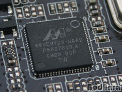 Marvell 88SE9123-NAA2 SATA3 ÄÁÆ®·Ñ·¯°¡ Á÷Á¢ P55¿Í ¿¬°áµÉ °æ¿ì PCIe x1 1.x ±Ô°ÝÀ¸·Î ¿¬°áµÇ¾î 250MB/sÀÇ Àü¼Û¼Óµµ¸¦ Áö¿øÇÑ´Ù. µû¶ó¼ SATA3 Çϵå¿Í SATA3 ÄÁÆ®·Ñ·¯°¡ SATA3 ±Ô°ÝÀ¸·Î ¿¬°áµÇµµ Á¤ÀÛ PCHÀÎ P55¿ÍÀÇ µ¥ÀÌÅÍ Àü¼ÛÀº SATA3ÀÇ Àü¼Û¼ÓµµÀÎ 6GbpsÀÇ Àý¹Ý ÀÌÇÏ·Î ¶³¾îÁö´Â ¹®Á¦°¡ ¹ß»ýÇÑ´Ù. ±×·¯³ª Premium¿¡´Â P55¿Í PCIe x4 1.x ±Ô°ÝÀ¸·Î ¿¬°áµÇ´Â PLXÀÇ  PEX8613-BA50BC ºê¸´Áö Ĩ¼ÂÀ» »ç¿ëÇØ 1000MB/sÀÇ ´ë¿ªÆøÀ» È®º¸ÇÏ¿© P55 Ĩ¼ÂÀ» »ç¿ëÇÑ ¸ÞÀκ¸µå¿¡ º°µµÀÇ SATA3 ÄÁÆ®·Ñ·¯¿Í SATA3 ÀåÄ¡¸¦ ¿¬°áÇÒ ½Ã ¹ß»ýÇÒ ¼ö ÀÖ´Â ¼Óµµ ÀúÇÏ Çö»óÀÌ ¹ß»ýÇÏÁö ¾Ê°Ô µÈ´Ù.